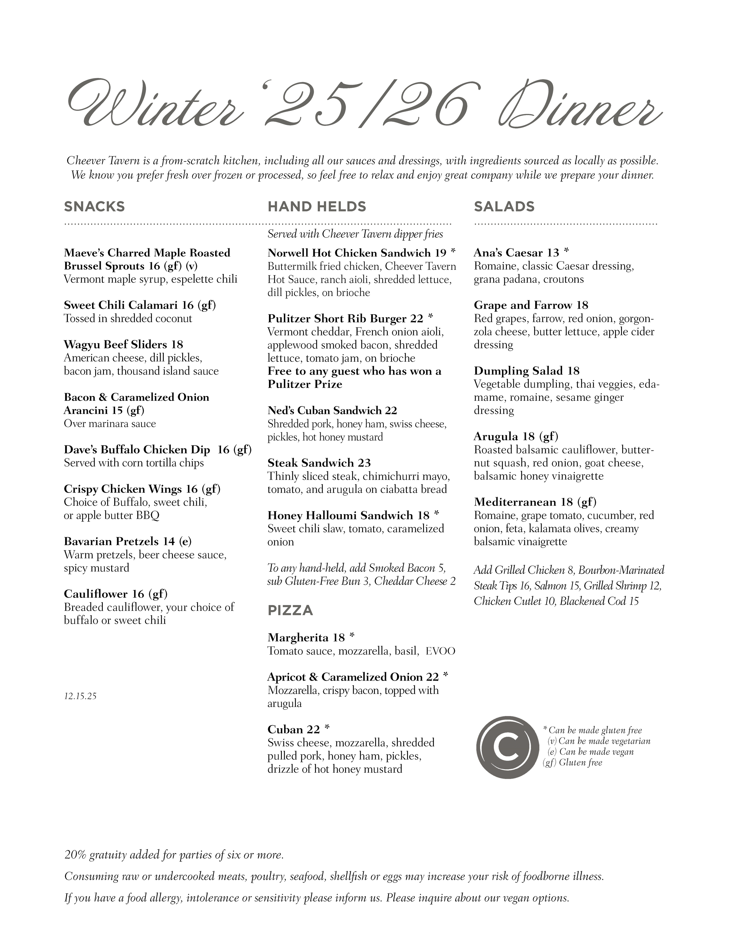 Winter '25/'26 Dinner & Drinks